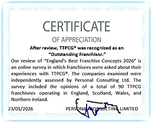 Bei unserer Prüfung "Englands besten Franchise-Konzepten 2026" handelt es sich um eine Online-Befragung, bei der Franchisenehmer zu ihren Erfahrungen mit TTPCG ® befragt wurden.